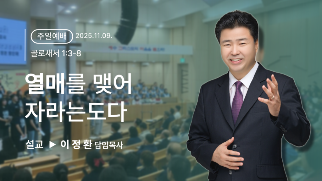 설교ㆍ찬양 주일 예배 이정환 담임목사 열매를 맺어 자라는 도다 2025년 11월 09일 찬양 주 안에 있는 나에게 2025년 11월 09일 새벽의 말씀 이정환 담임목사 희생의 길 2025년 07월 10일
